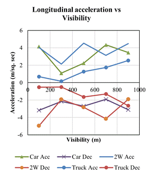 and longitudinal acceleration and speed patterns of different vehicle types in