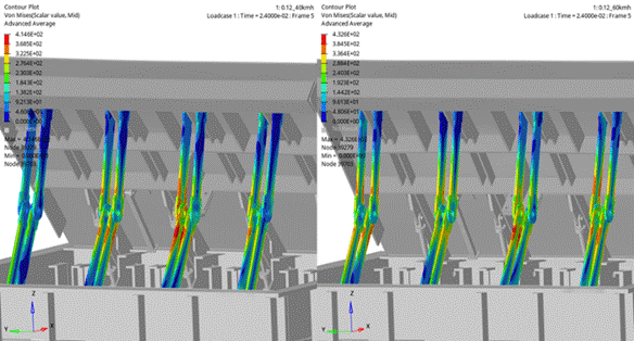 Fig. 11. Stress distribution of strut at time 0.024 s in two cases